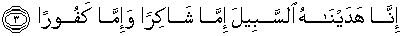 3. Sesungguhnya Kami telah menunjukinya jalan yang lurus; ada yang bersyukur dan ada pula yang kafir.