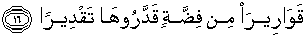 16. (yaitu) kaca-kaca (yang terbuat) dari perak yang telah diukur mereka dengan sebaik-baiknya.