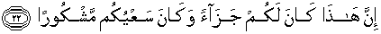 22. Sesungguhnya ini adalah balasan untukmu, dan usahamu adalah disyukuri (diberi balasan).