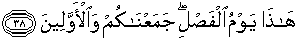 38. Ini adalah hari keputusan; (pada hari ini) Kami mengumpulkan kamu dan orang-orang terdahulu.