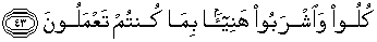 43. (Dikatakan kepada mereka): "Makan dan minumlah kamu dengan enak karena apa yang telah kamu kerjakan."