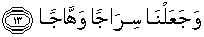 13. dan Kami jadikan pelita yang amat terang (matahari),