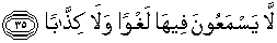35. Di dalamnya mereka tidak mendengar perkataan yang sia-sia dan tidak (pula) perkataan dusta.