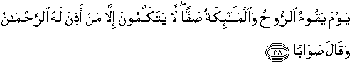 38. Pada hari, ketika ruh[1549] dan para malaikat berdiri bershaf-