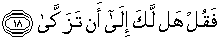 18. dan katakanlah (kepada Fir'aun): "Adakah keinginan bagimu untuk membersihkan diri (dari kesesatan)."