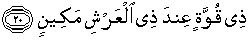 20. yang mempunyai kekuatan, yang mempunyai kedudukan tinggi di sisi Allah yang mempunyai 'Arsy,