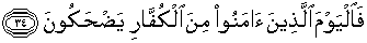 34. Maka pada hari ini, orang-orang yang beriman menertawakan orang-orang kafir,
