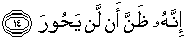14. Sesungguhnya dia menyangka bahwa dia sekali-kali tidak akan kembali (kepada Tuhannya).