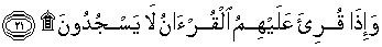 21. dan apabila Al Quran dibacakan kepada mereka, mereka tidak bersujud,