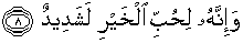 [1597]. Sebagian ahli tafsir menerangkan bahwa maksud ayat ini ialah: manusia itu sangat kuat cintanya kepada harta sehingga ia menjadi bakhil.